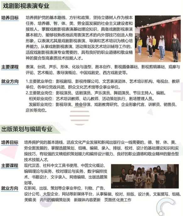 学院紧跟文化产业市场需求,坚持就业导向,创新产教融合机制,深化教育教学改革,秉承“以德立人、以质强校、服务经济社会建设,促进人的全面发展”的办学宗旨,弘扬“厚德力行 博学勤思”的校训精神,坚持“内涵发展、特色立校、立足产业、面向市场”的办学理念,为建设成为国内知名、行业领先、省内一流的技能型高水平大学而不懈努力。
